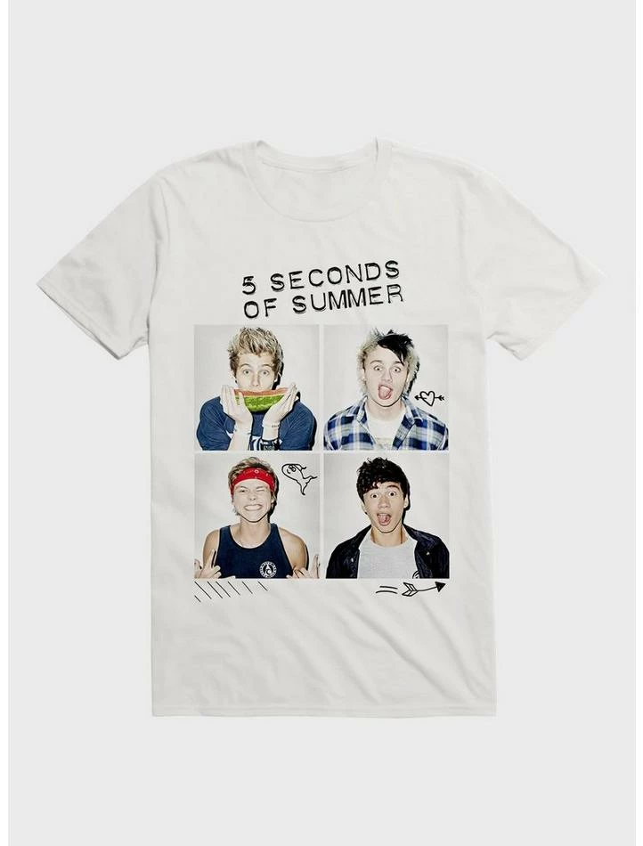 Add more 5SOS tees to your collection with this one featuring squared images of the band members with logo above.