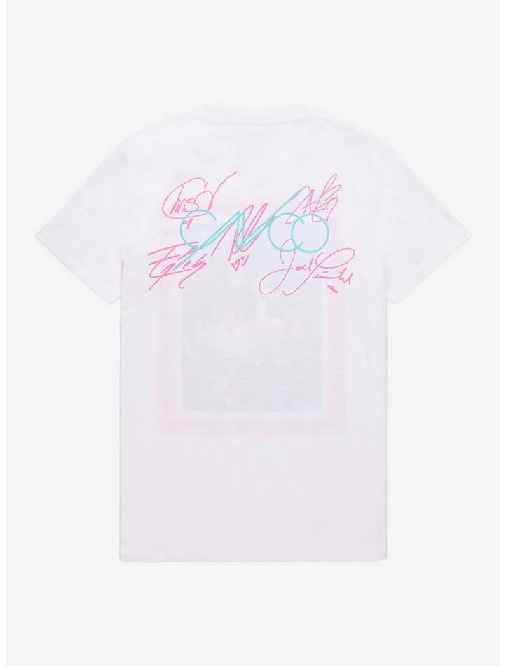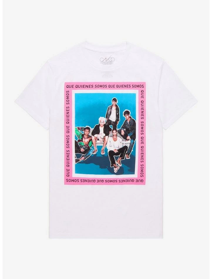 Crossover sensations CNCO belong in your tee drawer. This pop reggaeton act’s album Que Quienes Somos lives rent-free in our heads. This tee features a photo of the group from that album’s cover, framed by pink text showing the album’s name.