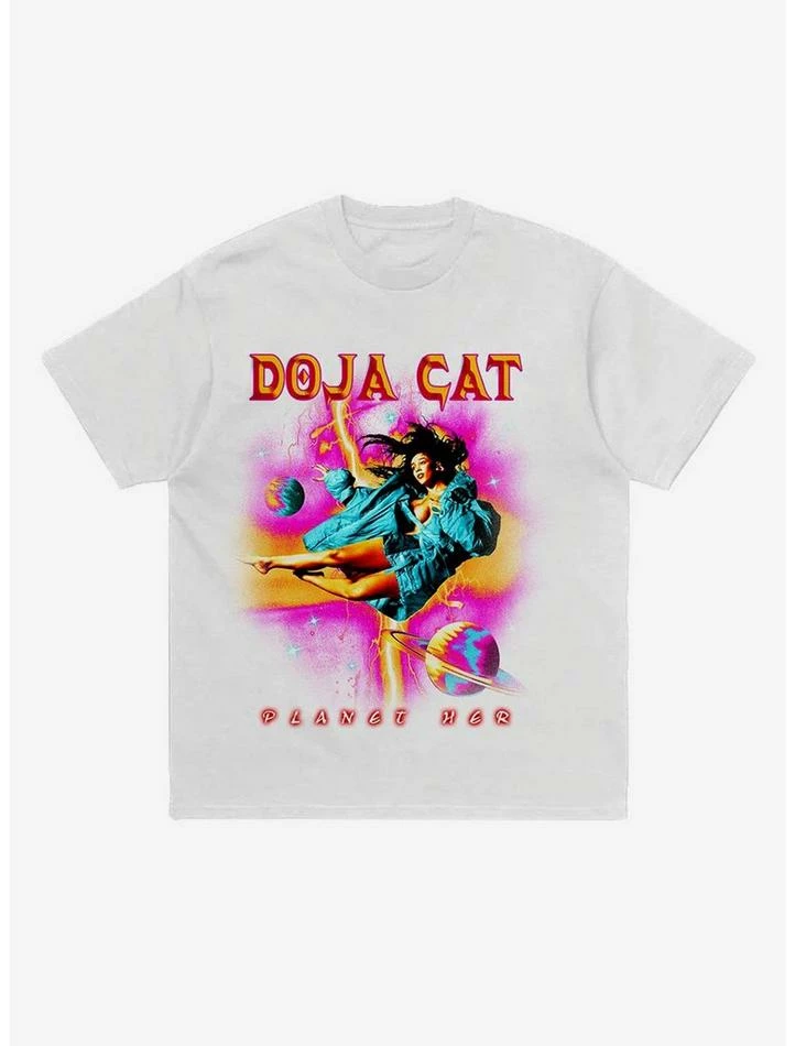 Rep Doja Cat’s hit album, Planet Her, with this tee! With singles like “Woman” and “Need to Know,” you’ll be jammin’ all day! This tee features and image of Doja Cat floating among planets, framed by her name and “Planet her.”
