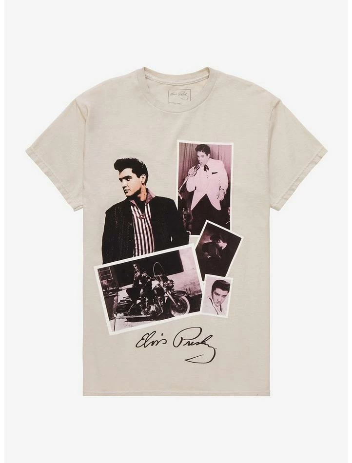 Elvis, aka The King, is back. Get ready for a new era of pop culture dominance by Elvis Presley and grab this tee. It features a collage of photos from his early days of stardom.