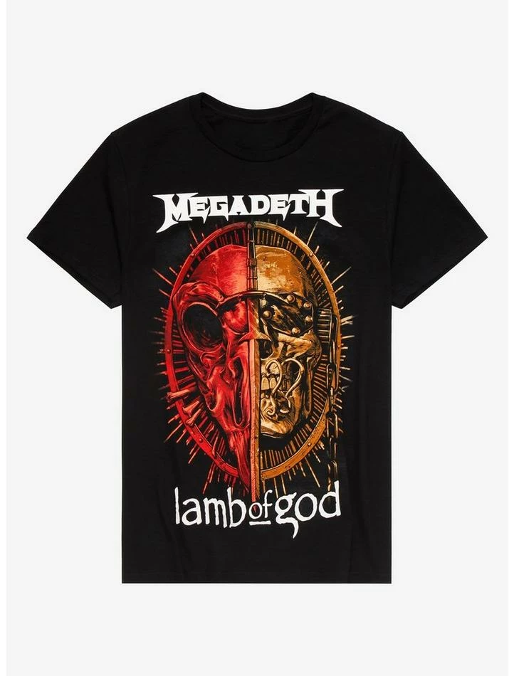 Feelin’ those post-concert blues? Regretting not getting a tour tee? Don’t worry, we gotchu! This tee is inspired by Megadeth and Lamb of God’s co-headliningΒ The Metal Tour of the YearΒ North American 2021 tour. A split print of their logos are featured on the front, framed by both band names.Β