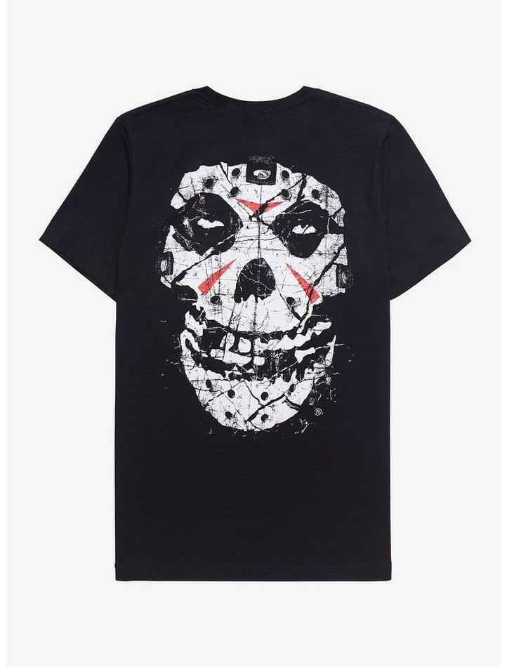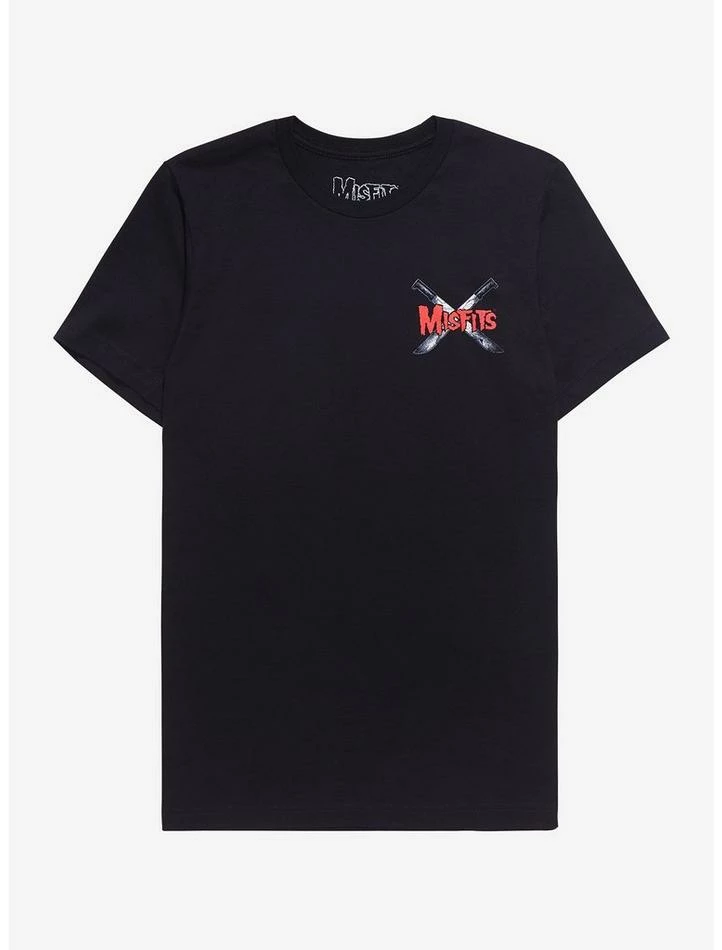 Still a fiend at heart? Rep the Misfits with this killer tee, featuring the band name on the chest with crisscrossed machetes and The Crimson Ghost wearing a familiar hockey mask in the back!