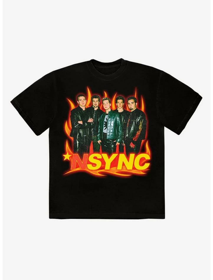 It’s gonna be… this tee! If you’re Team NSYNC, grab this tee honoring one of the best OG boy bands. It shows a portrait of the group with flames and the band logo.