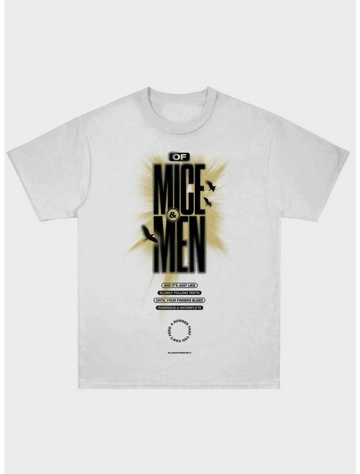 Rep the latest from Of Mice & Men with this white tee featuring a bird-accented logo and lyrics from “Pulling Teeth.”
