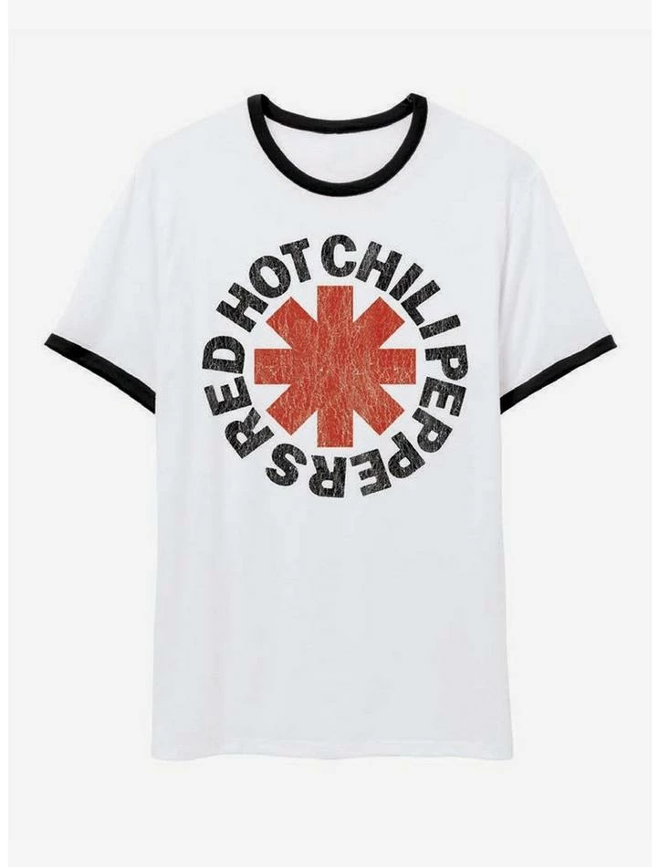 Rep your love for Red Hot Chili Peppers in a classic way with this ringer tee! Featuring a distressed print of their iconic asterisk logo, encircled by the band’s name.
