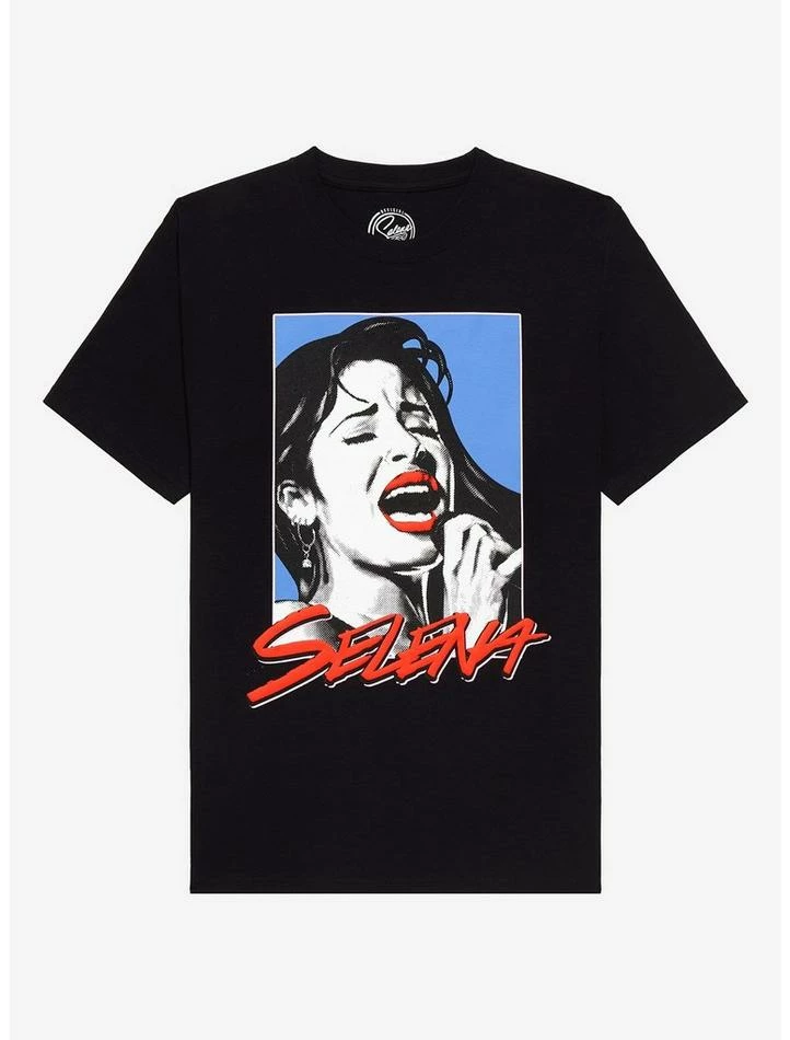 Need a little something extra for your ‘fit? Add the Queen of Cumbia, Selena. This awesome tee features a boldly colored graphic of Selena singing, with her name below in puff paint.