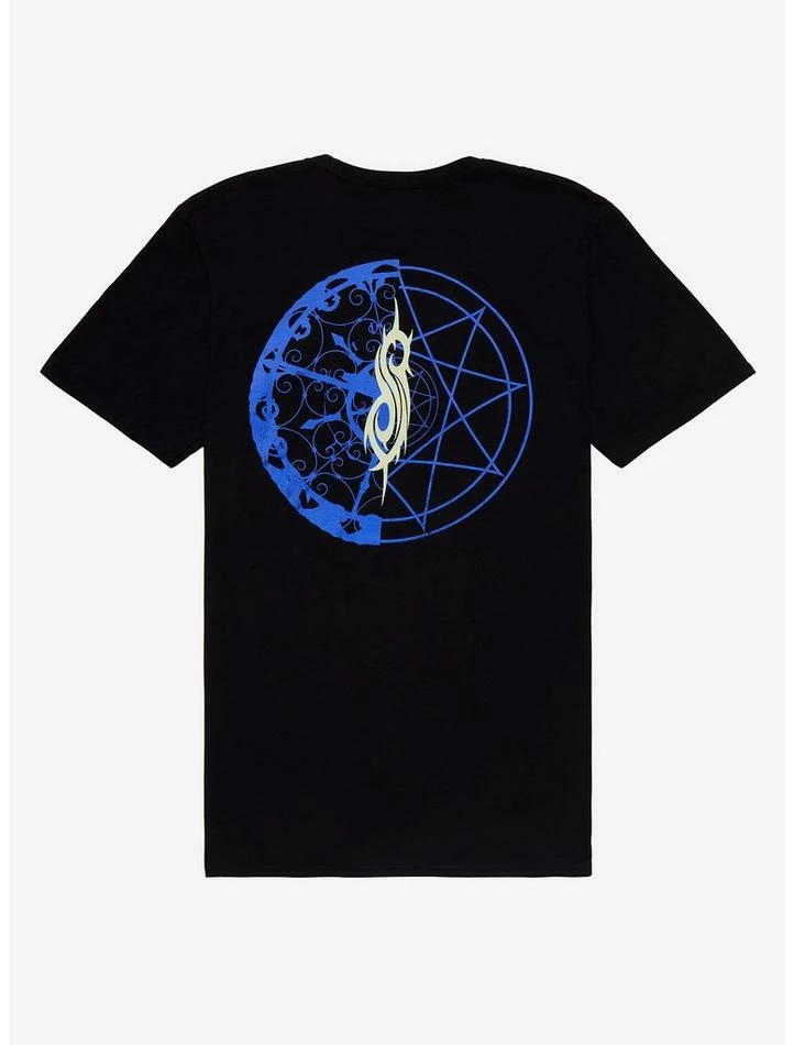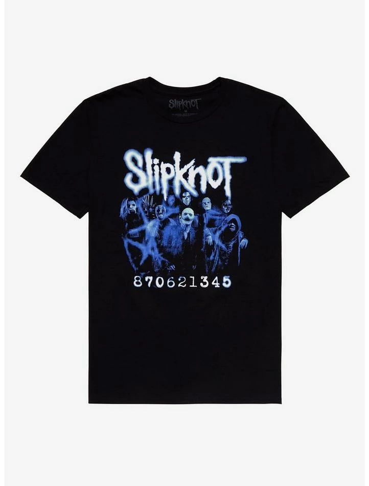 Stay heavy in this Slipknot tee, which features a shot of the members and the number 870621345, each digit of which signifies a different member in the band. The back of the tee has a geometric graphic with the “S” in the middle.
