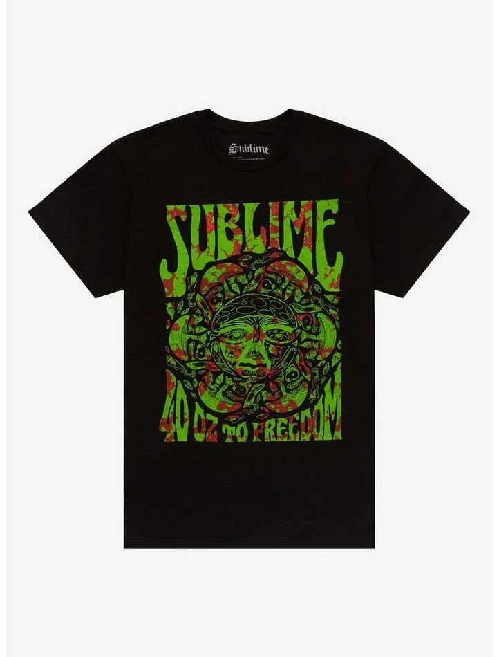 One of the best chronicles of ’90s SoCal life, 40 Oz. to Freedom (1992) by Sublime sounds just as good today as it did when it first dropped. This tee features a green, psychedelic graphic inspired by the album’s cover, with red splatters against the green.