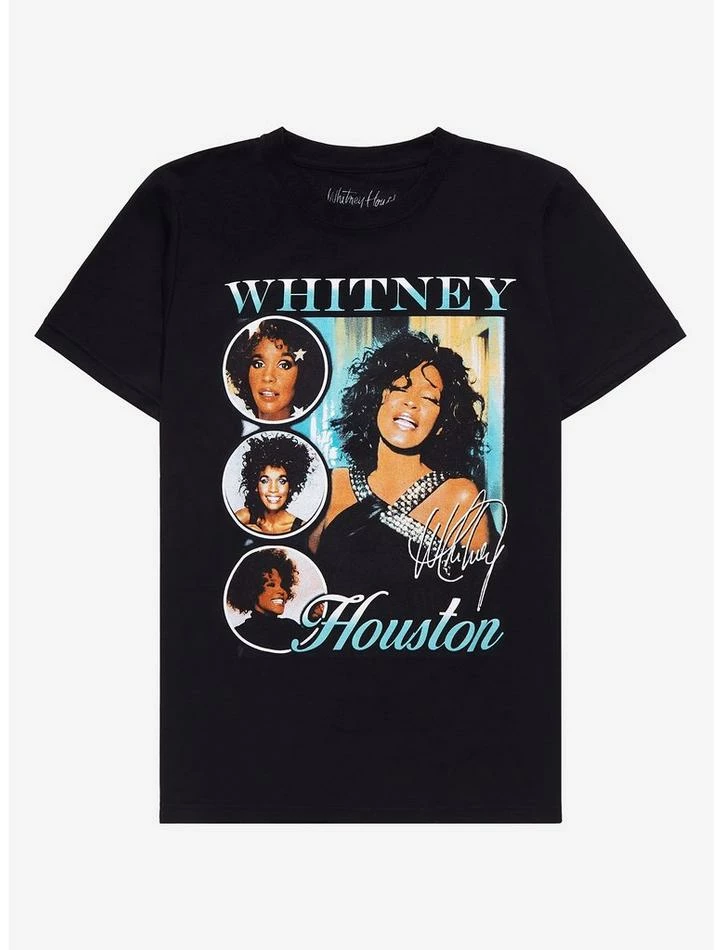 Have you been saving all your love for the perfect Whitney Houston tee? Well, you’ve found it! This tee features a collage the singer rockin’ some of her best looks, with her name in a blue ombré font.