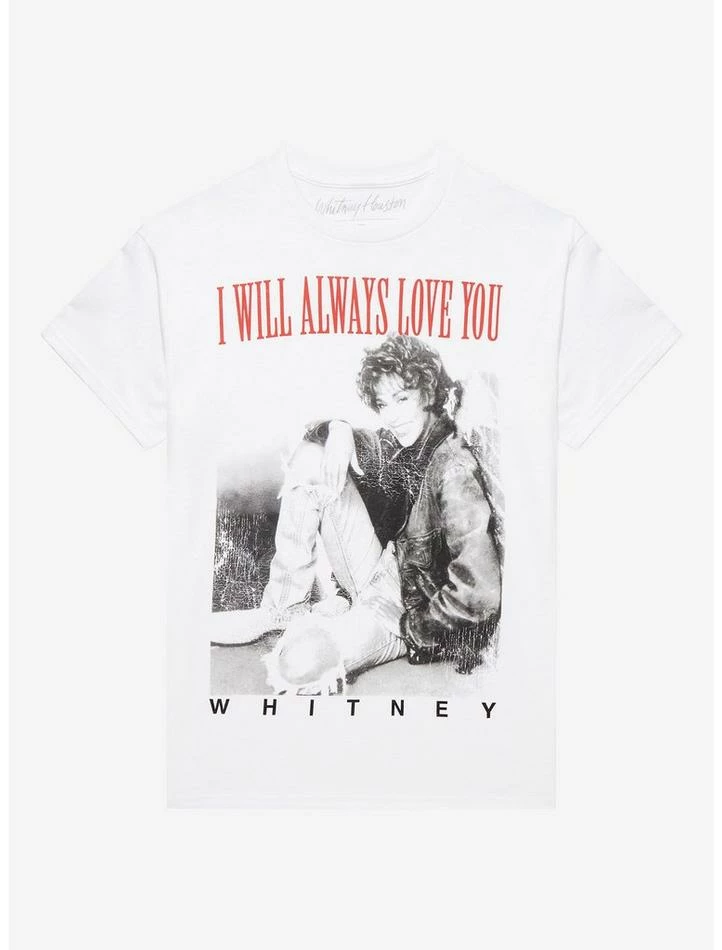 The chokehold that Whitney Houston’s track “I Will Always Love You” had on pop culture in the ’90s cannot be overstated. The Grammy-winning smash hit is honored with this tee, which features a faux-distressed portrait of the singer, plus the track’s name.